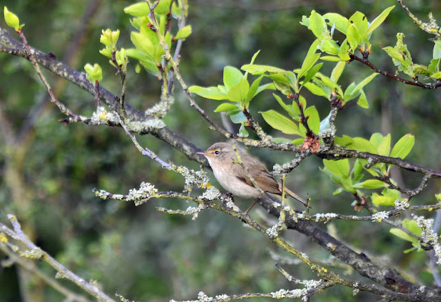 I saw 2 Chiffchaffs which were almost certainly nest-building given their to and fro activity around a bush just off the boardwalk.