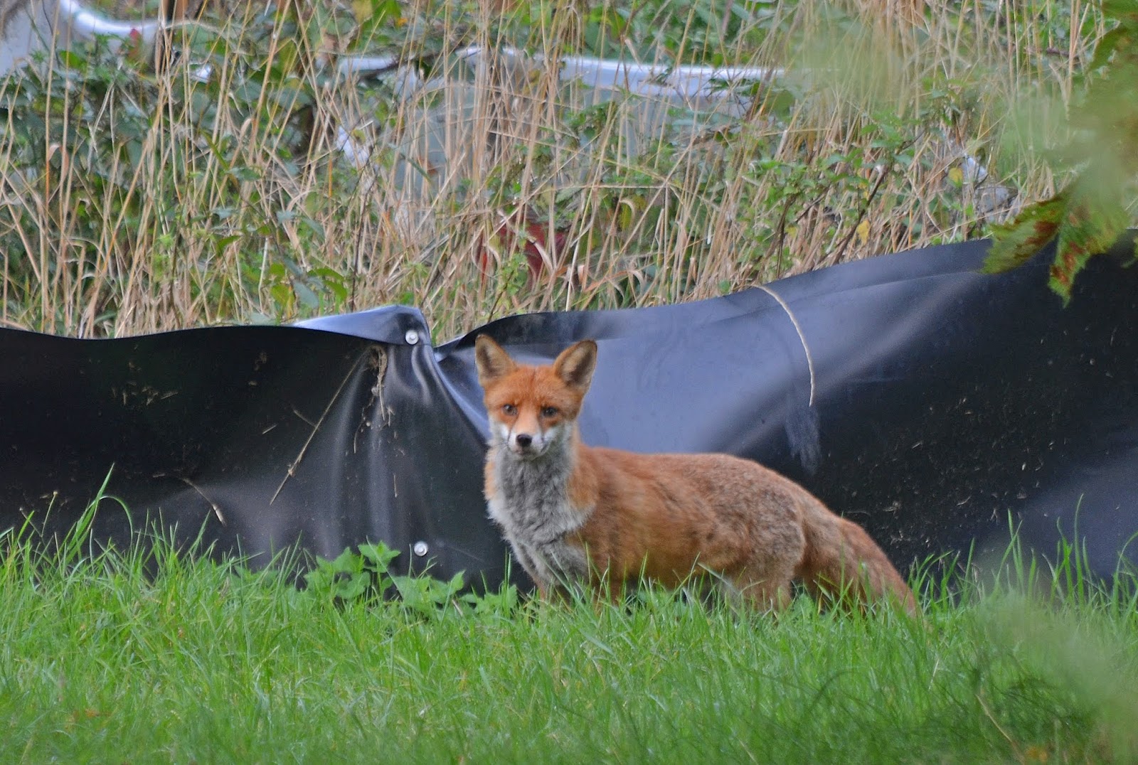 Here is a photo of the Red Fox in the cemetery and a heavily cropped record shot of the Great Spotted Woodpecker: