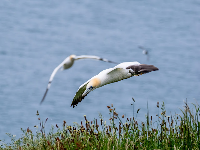 The highlights during my visit were as follows: Gannet (++++), Puffin (c.25), Guillemot (++++), Razorbill (+++), Kittiwake (++++), Fulmar (c.20), Shag (2), Herring Gull (c.20), Tree Sparrow (c.30 around the car park and visitor centre and in fields adjacent to the cliffs), Swallow (4), Skylark (1 singing male), Meadow Pipit (2), Reed Bunting (2 singing males), Linnet (c.10), Kestrel (1 female)