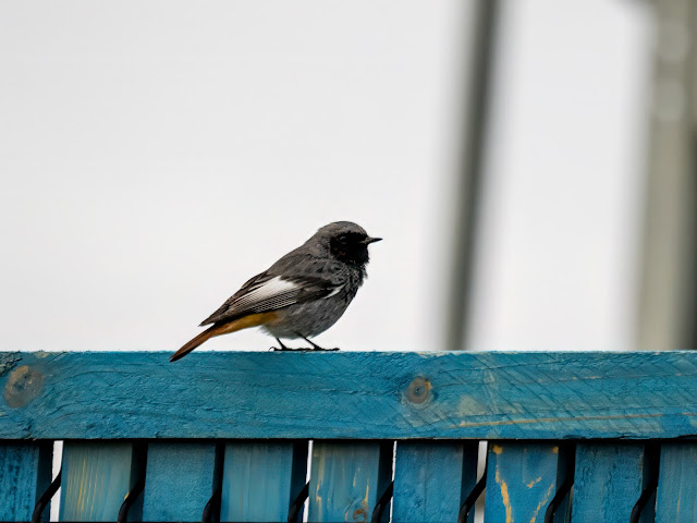 Ness Point, Lowestoft is a coastal industrial area and it has nothing to recommend it scenically although it is significant in being the most easterly point in the UK. It is also well known amongst birders as being a very reliable site (usually) for Purple Sandpipers in winter. However, Black Redstarts are occasionally reported here too and I easily found a male bird feeding from the boundary fencing to the wind turbine.